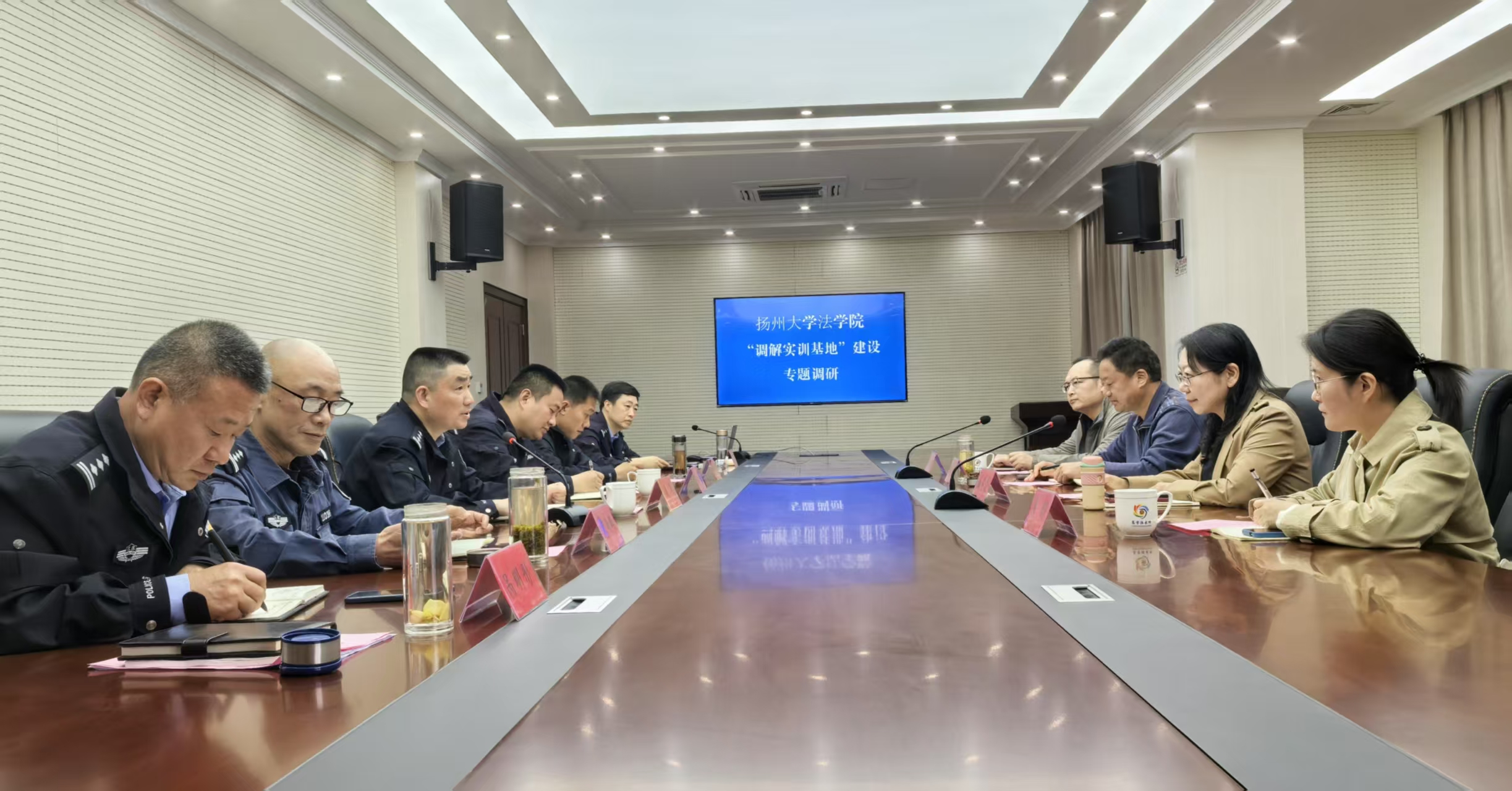 曲昇霞院长在座谈中强调,此次调研为“调解实训基地”建设明确了“服务基层、贴近实战、科技融合”三大方向,学院将以基地为载体,深度融合派出所一线调解经验和警校系统化训练资源,打造“实境化”实践教学场景,建设集“教学实训、案例研究、社会服务”于一体的示范平台,双方计划建立“双导师”机制,由资深警长与法学教师共同指导调解全流程演练,开展“矛盾纠纷调解实境教学规范”制定工作,共同为平安江苏、法治江苏协同培养更多“懂法律、通民情、会调解”的复合型基层调解人才。